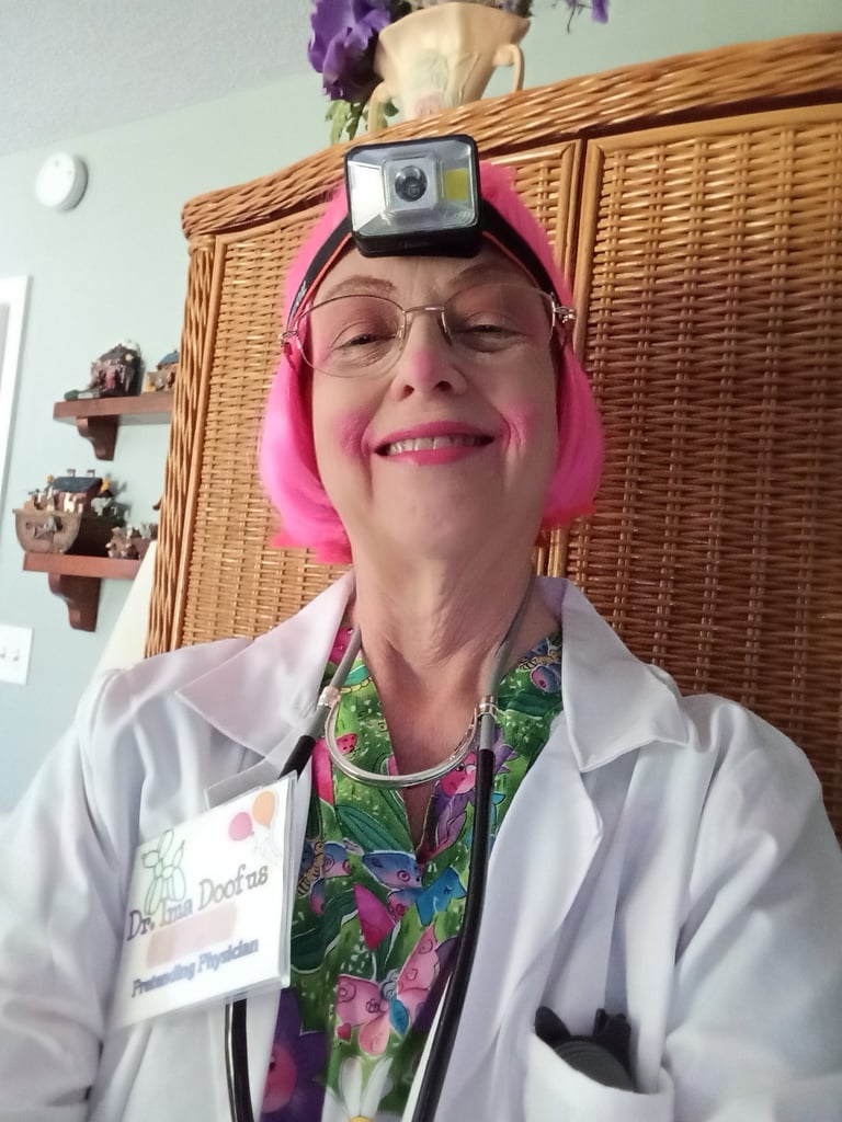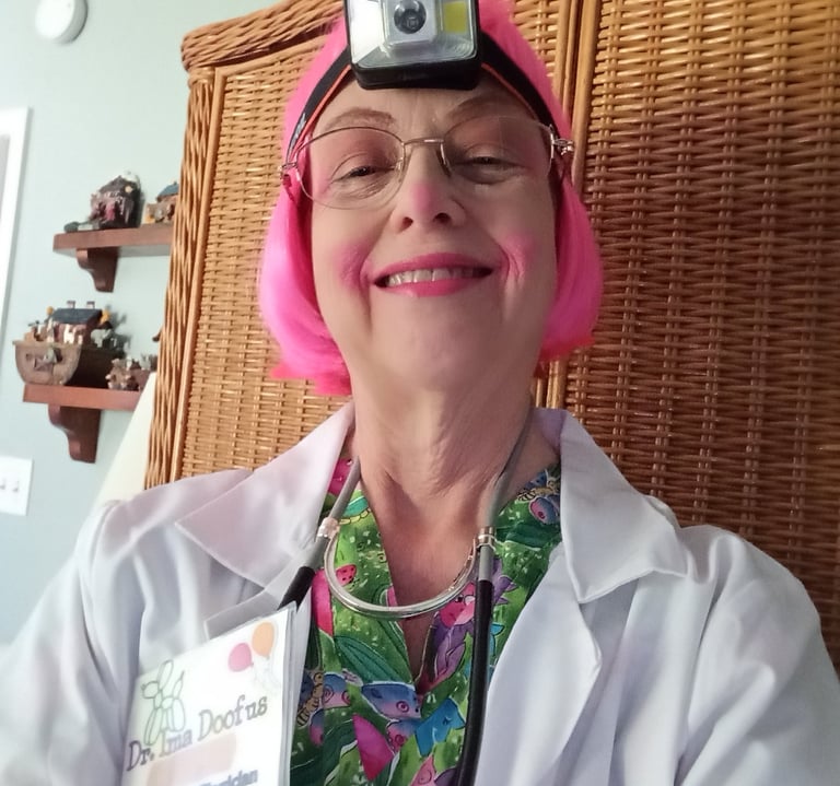 Dr. Doofus, Pretending Physician, is on a mission to tickle your funny bone while curing your blues! She especially works well in medical and assisted living facilities, hospices and dementia care units.
